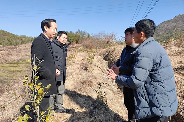 徐拥华一行察看张家河村油茶基地建设情况。