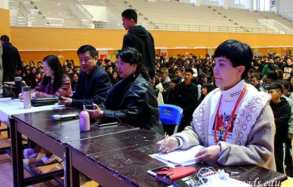 评委观看学生表演,为其打分。鲍坤 摄