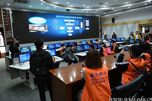 大学生记者们在智慧城管执法监督平台指挥中心参观学习。陈烁 摄