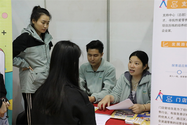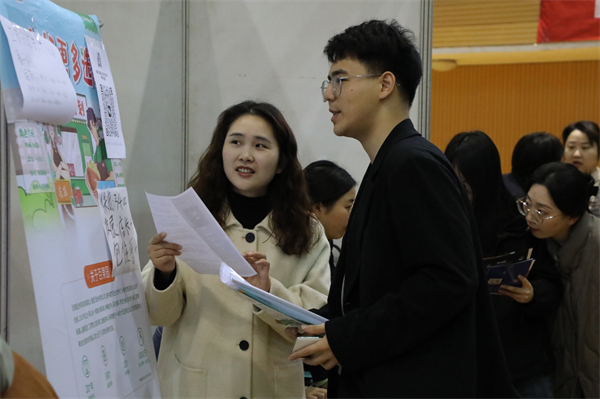 “充分剖析自己,总结自己的价值和能力,会让你更加明确自己真正想要追求的职业目标。”商学院市场营销专业大四学生张译龙在企业展位前仔细阅读企业概况,详细询问岗位要求,寻找自己心仪的企业。环境设计学院风景园林专业大四学生孙冉表示,“对于找工作这件事,我的目标一直比较明确,也对自己的职业方向有清晰的设想。今天的招聘岗位非常多,希望能与自己目标相一致的企业达成签约意向。”