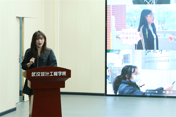 “这是我第二次参加‘把最美武设带回母校’社会实践活动,我们这次的实践活动可以概括为‘两省四校五讲’,到访了河南省与山东省两个省份的四所学校开展了五次宣讲。”来自成龙影视传媒学院的李晓燕信心满满地介绍团队实践成果。她们前期通过走访采取问卷调查的方式确定宣讲高中,然后进入班级开展针对性宣讲、发放招生简章、播放宣传视频、建立答疑群等,认真细致的态度、真诚洋溢的热情成功打动了高中学子。来自成龙影视传媒学院安景顺同学代表第四组进行汇报,他们依托家乡团县委“高校学子母校行”活动,积极争取高中母校老师支持,分阶段推进实践过程,逐步完成实践目标……“团队介绍、实践过程、实践成果与影响、实践心得”等四个方面一一展开,他清晰流畅的表达、精彩多样的分享获得了老师和同学们的一致肯定。