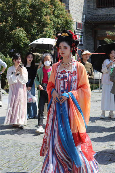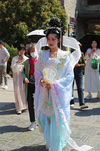 据介绍,本届花朝节上,时尚设计学院服装与服饰设计专业的7名毕业生以“十二花神”及“百花仙子”为主题,精心设计了融合传统与现代审美的华美汉服,并在节日当天由表演专业的同学们进行现场演绎,呈现出令人惊艳的视觉效果。