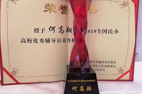 何高翔老师荣获第四届“全国民办高校优秀辅导员”荣誉称号