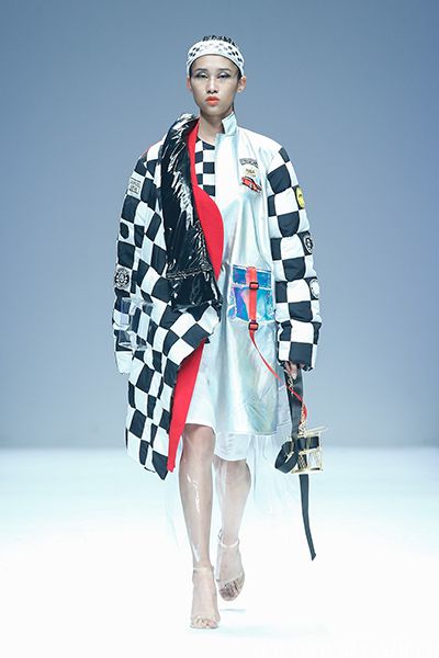 “赛车在现实生活中扮演着速度、激情与自由的角色,它给我们传递着一种积极、进取、超越的精神。”毕业生王园园对记者说,她的作品《反束缚》灵感来源于赛车运动超越一切的精神。作品以涤纶运动面料为主打面料,以轮胎纹布料为辅料,添加了大量反光条元素和抽绳、魔术贴、日子扣等工艺细节。服装结构上通过分割设计,打破包裹型束缚,与赛车所传达的精神不谋而合。
