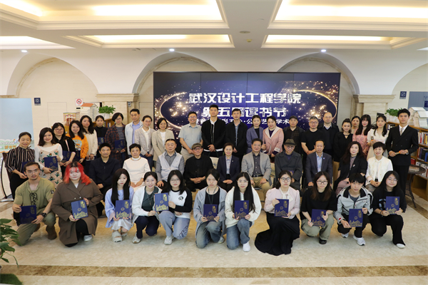 参加第五届读书节暨吾形五色·公共艺术学术月启动仪式的校领导及师生合影。刘恒 摄
