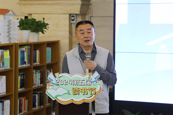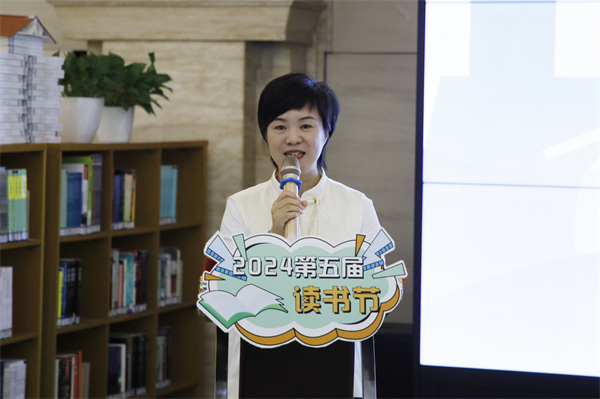 图书馆馆长杨文静介绍第五届读书节暨吾形五色·公共艺术学术月总体情况。刘恒 摄