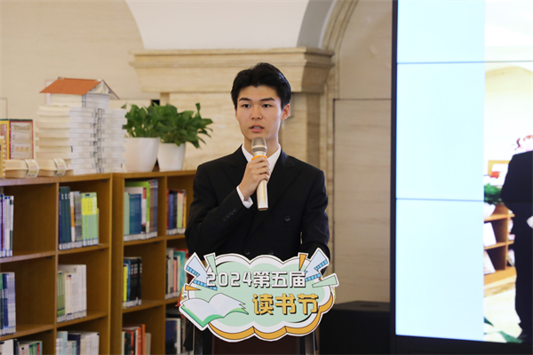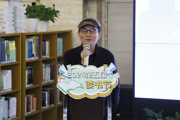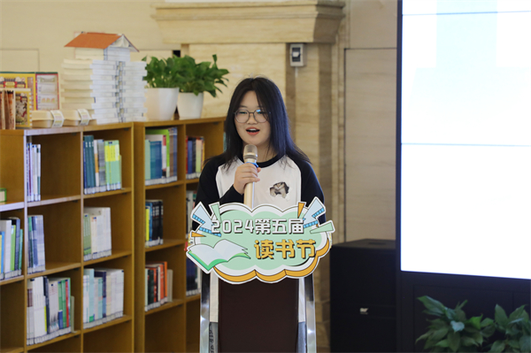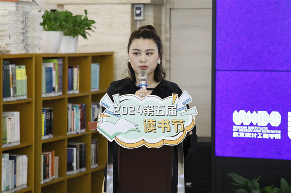 公共艺术学院教师代表冯叶为现场师生解读读书节。林耘至 摄