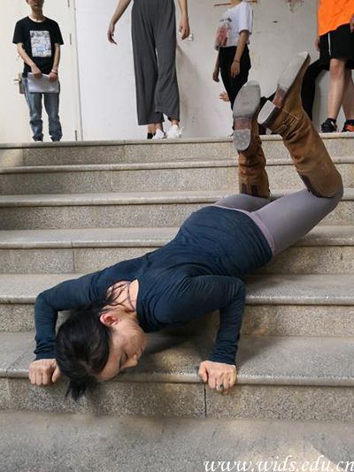 “我以前走过的台阶,仅是联系上下平面空间的通道,人们匆忙通过它不会久留,更不会发现它的故事以及自己与它之间的关系,更不会进行联想。”殷梅老师在观看学生的表现后,对同学们说到,“一个有温度和柔软的身体划过坚硬和冷冰冰的大理石,会唤醒人们的感知系统,并颠覆常识。对于身在其中的同学们,需要重新挑战触摸、观察、聆听、倒置、空间改变和适应等空间场景动作,唤醒身体的感知,从而对舞蹈、诗歌、远方产生向往或者颠覆,这是环境舞蹈在现代舞蹈中的艺术体现。”
