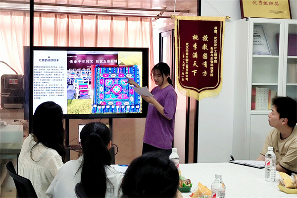 来自食品科学与工程专业2202班的壮族学生代表农燕琼向大家介绍壮锦、壮歌以及特色美食。