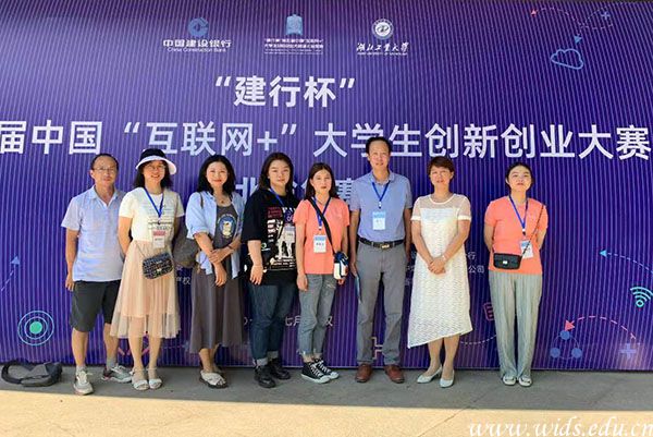 湖北省复赛当天,徐拥华(右三)、康爱梅(右二)、吴斌(左一)等领导带队参加比赛。