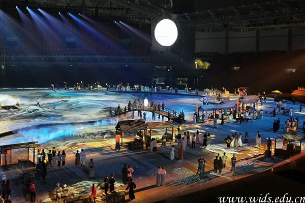 或见水上行舟、桥上行人,或见水面化身大江、变成河流,演员们在水中奔跑、舞动……三百多名演员在世界顶级三维立体式舞台上精彩再现了中华文明的源远流长,每一次变幻,每一种演绎,都牢牢锁定了场内外观众的目光。