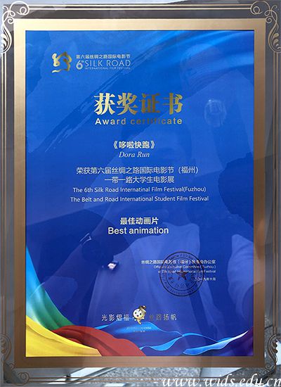 本网讯(记者 江淼)10月19日,第六届丝绸之路国际电影节一带一路大学生电影展颁奖礼在福州举行。pp电子学生创作的动画作品《哆啦快跑》荣获本届大学生电影展最佳动画片奖。