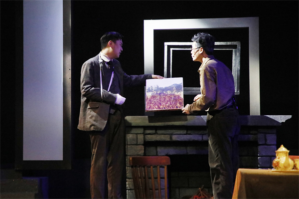 《油漆未干》是一部以梵高为人物原型的话剧,讲述了穷画家克里斯宾死后,他的画作卖到了天价,造假画的、艺术商贩蜂拥而至,到画家生前寄居的哈医生家中“掘矿探宝”。“这部戏体现了现实主义风格,艺术表现形式丰富、情感传递细腻。”指导老师江若楠表示,选择这部剧的初衷也是为了引导青年学子对艺术、人生和社会的深刻思考。