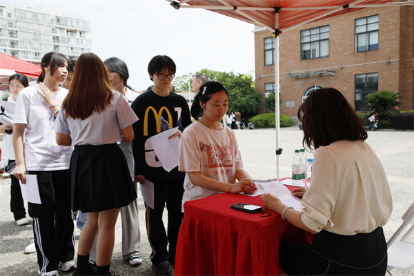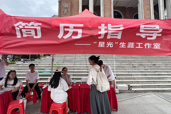 学校“星光”生涯工作室在主会场设立简历指导服务区,为学生提供“一站式”就业指导服务。叶帆 摄