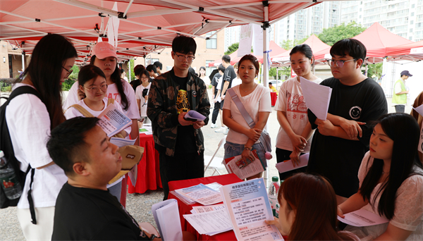 “本次招聘会设主会场和分会场,主会场位于图书馆前广场,招聘企业涵盖艺术设计、数字传媒、信息技术、营销策划、文化教育等行业;得一堂广场的分会场还有18家食品生物类企业,则是结合食品与生物科技学院第六届食品文化节组织的专场招聘。”据招生就业处就业专员陈晨介绍,“在主会场,学校‘星光’生涯工作室还设立了简历指导服务区,为学生提供简历诊断、面试指导、基层就业政策咨询等‘一站式’就业指导服务。”