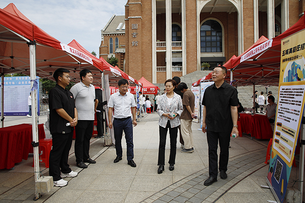学校党委书记冉春桃、校长龚少平在会场指导招聘工作,要求各单位为企业来校招聘提供便利、为毕业生求职面试做好帮扶指导。刘恒 摄