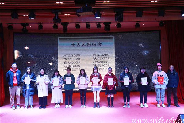 “2019年度十大风采宿舍”获奖代表上台领奖。蔡凯铭 摄