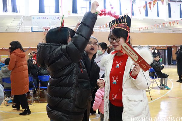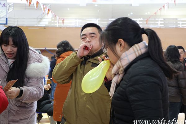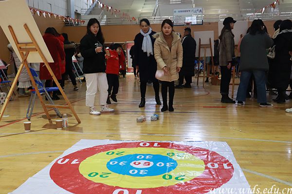 抽奖结束后,教职工便参与到今年联欢会的游戏环节。据悉,今年的联欢会以运动类和智力类游戏为主,设置了包括扔飞镖、投篮、抖球、盲人击鼓、帽子吃饼干在内的多个项目,内容丰富,形式多样,极大地调动了老师们的热情,大家一边徜徉在迎接新年的喜悦之中,一边体验游戏带来的乐趣。