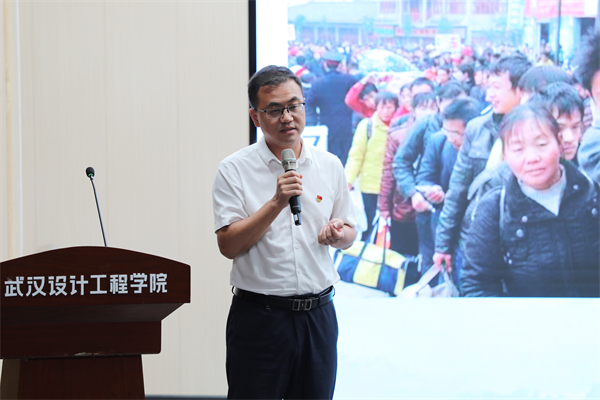 罗田县匡河镇党委书记马子飞以《乡镇那些事儿》为题,向学校师生全面介绍乡村振兴工作。刘恒 摄