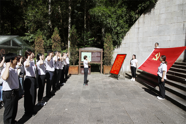 培训班学员在井冈山革命烈士陵园重温入党誓词。刘恒 摄