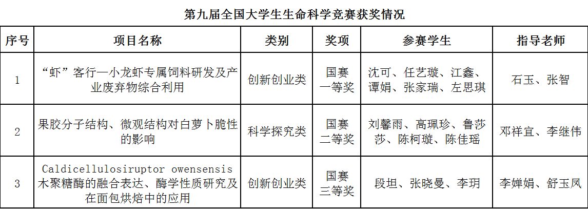 “近年来,我院学子累计在全国大学生生命科学竞赛中获得一等奖1项、二等奖11项、三等奖24项、优胜奖5项,这一成绩充分体现了学院在人才培养、教育教学改革和产学研协同育人各方面的积极成效。”据食品与生物科技学院副院长付晓燕介绍,学院坚持贯彻“以赛促学、以赛促教、以赛促研”,把学科竞赛作为创新人才培养的重要途径,鼓励师生积极参加各类学科竞赛,不断提高创新意识、实践能力和专业素养。下一步,学院将继续深化学科竞赛工作机制,加强对师生参加学科竞赛的支持与服务指导,促进培养更多具有创新精神和专业技能的优秀人才。