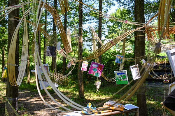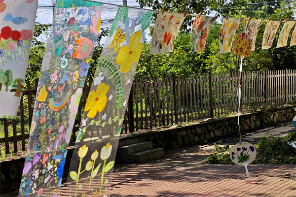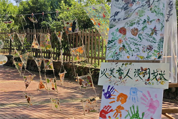两周的时间里,志愿者们为孩子们精心打造了独具特色的“自然课堂”美育课程,通过植物拓印的奇妙探索、手工竹编的匠心传承以及户外写生的灵感捕捉等方式,引导孩子们用眼睛、鼻子、耳朵和手去感受真实的大自然,树立可持续发展的意识。一幅幅色彩斑斓、童趣盎然的作品展示了“自然课堂”的美育成果,映照出孩子们对自然的感悟与想象。
