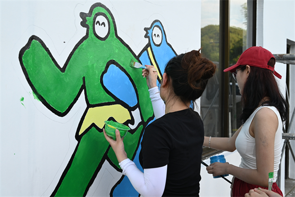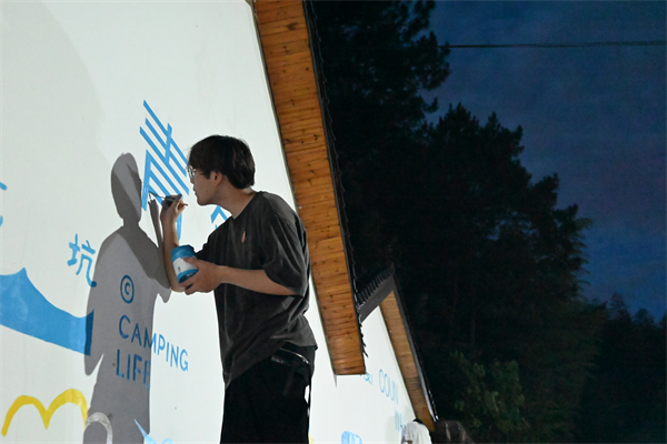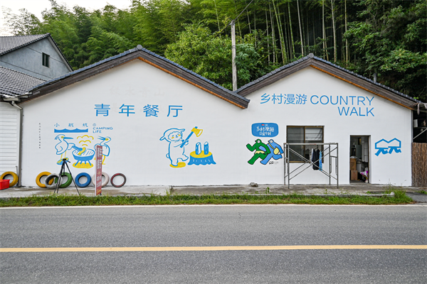 “筑梦”志愿服务队浙江分队为夏阳村建筑外墙创作墙绘。
