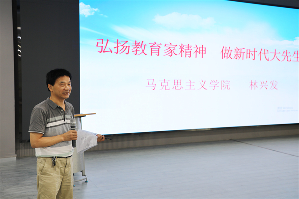 全国模范教师、马克思主义学院院长林兴发作专题报告。刘恒 摄