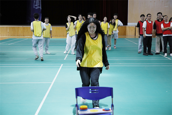 当天下午,新进教职工在大学生活动中心开展素质拓展活动。刘恒 摄
