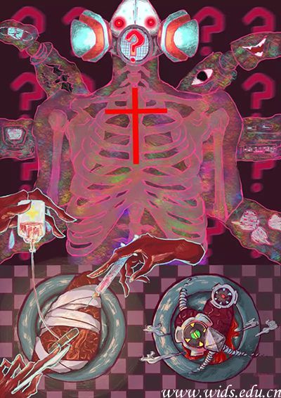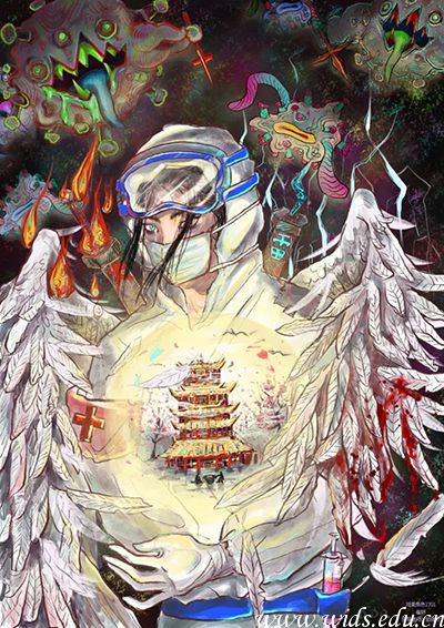 工艺美术专业学子余惠婷创作的丙烯画《抗疫时期》。