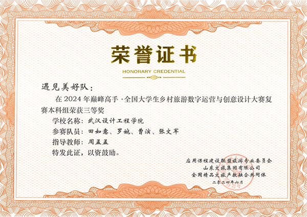 文化创意管理学院两项作品分别荣获2024年巅峰高手·全国大学生乡村旅游数字运营与创意设计大赛全国二等奖、三等奖。