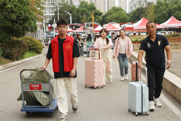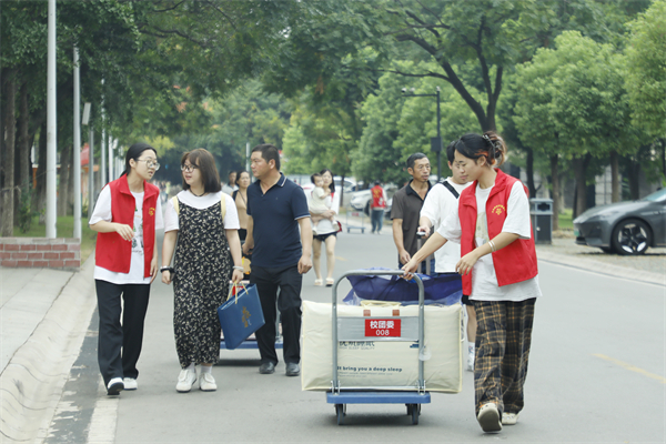 “行李搬运、路线指引、交通引导、办理入住……”校园内随处可见志愿者忙碌的身影,他们一对一热情地帮助新同学搬运行李,讲解报到流程,介绍校园环境、教育教学设施,解答各种疑问。
