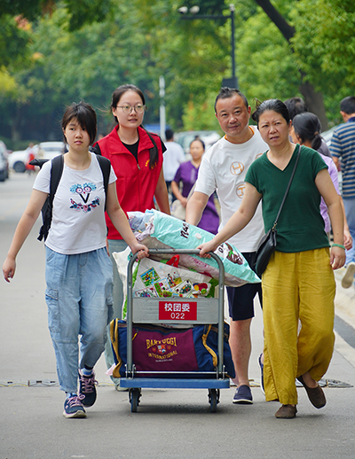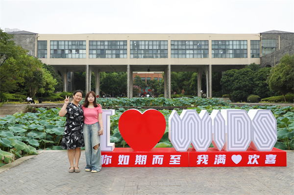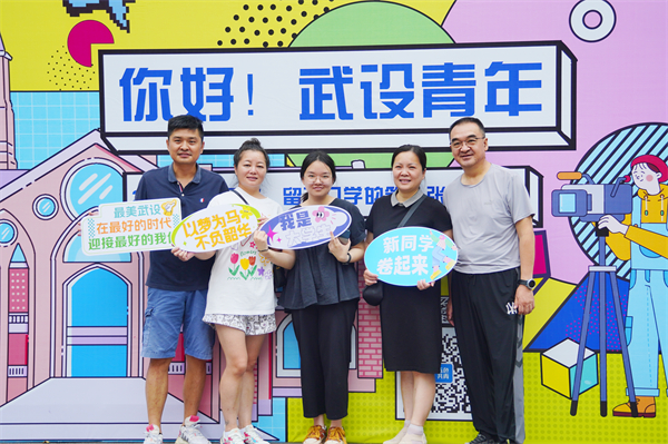 新生和家长在校园各处打卡合影,定格初见武设的美好。覃俊杰 摄