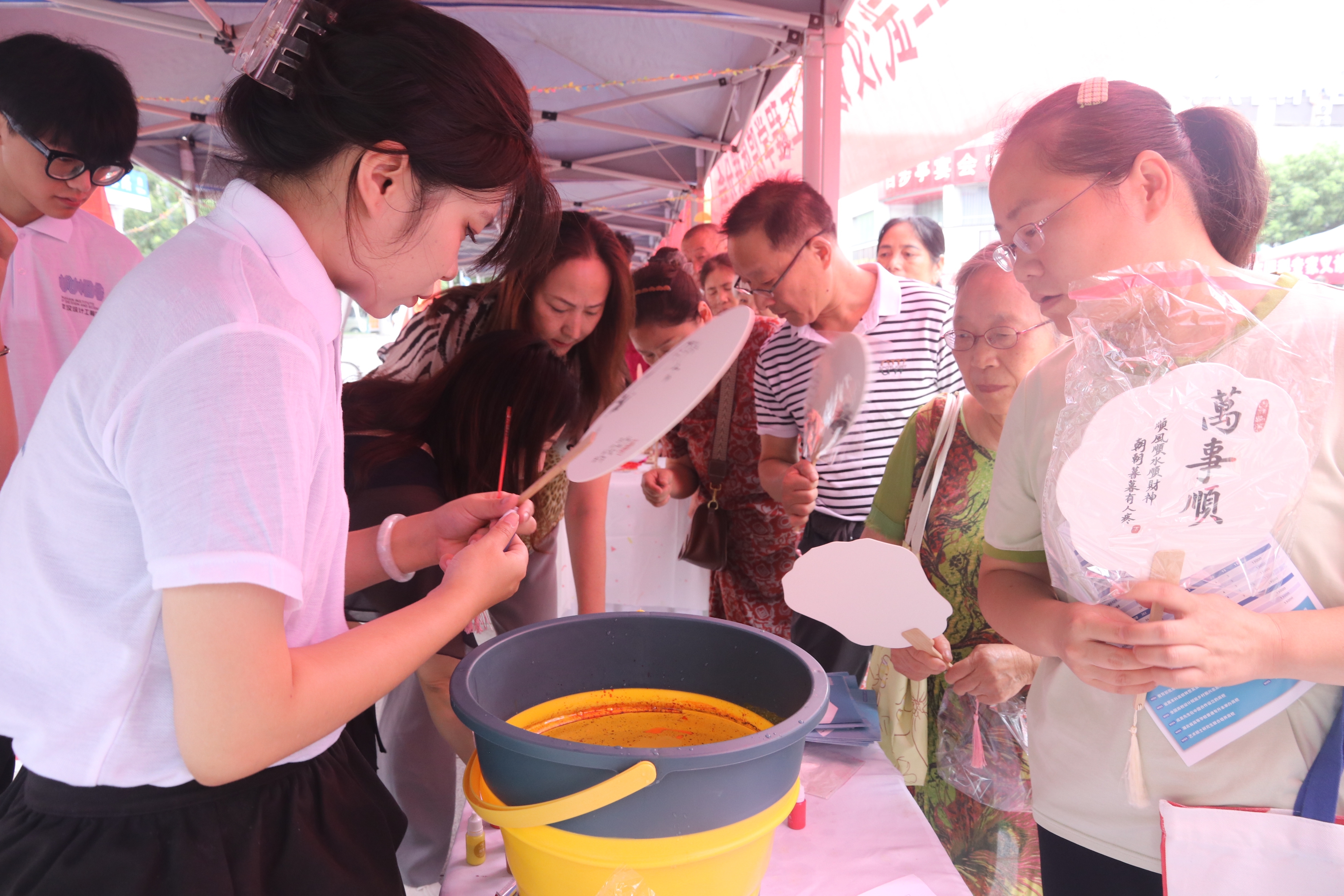 活动现场,pp电子侨联分会的志愿者们一边亲手制作精美的“非遗漆扇”,一边积极向社区居民宣传非物质文化遗产的重要性。他们将现场制作的漆扇赠予社区居民,通过生动的讲解和互动体验,让居民们深刻了解非物质文化遗产的价值及其在当代的传承意义。活动不仅让居民们感受到非物质文化遗产的独特魅力,还增强了大家对传统文化的认同感和自豪感。
