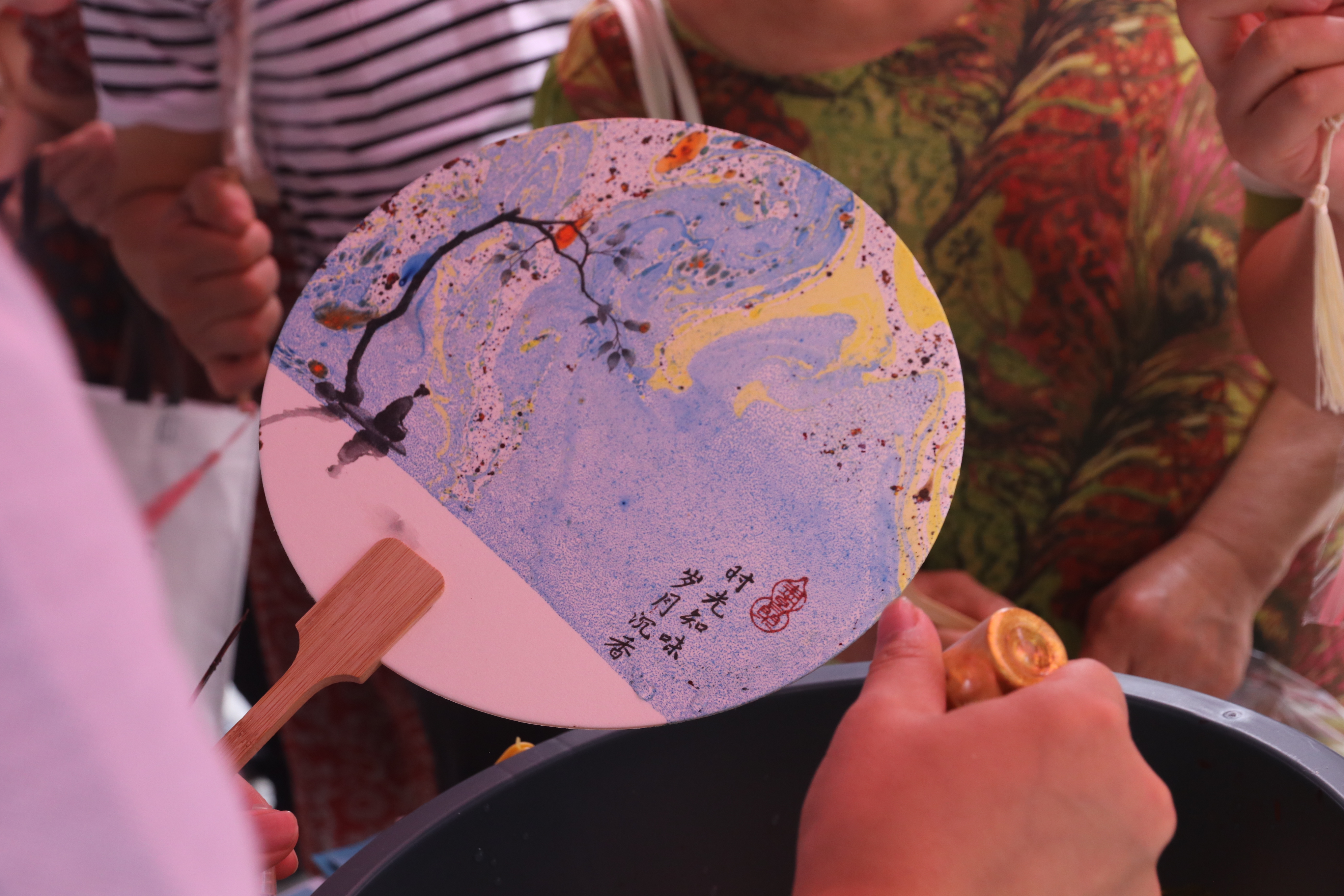pp电子侨联分会志愿者们制作的“非遗漆扇”。 黄毅菲 摄
