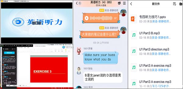 商学院郭静老师在分享会上认为,在线教学要充分调动学生的学习兴趣,才能达到预期的教学效果。郭静老师本学期承担了《英语语法》《口译》等四门课程的教学任务,在进行在线教学时,她通过共享课程视频、自制微课音视频和图片、文字说明,构建了丰富多样的课程教学内容;再结合平台观看、音频自查和老师的直播授课、QQ讲解等多样化的教学形式,充分调动学生的学习兴趣。为了增强学习动力,郭静老师在授课之初就对学生明确学习目的和教学要求,在授课过程中,她还会通过群作业、个人提问、集体抢答、学生互评、小组合作等多种形式检查学生的掌握情况。