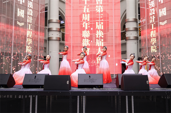 换届大会结束后,武汉市侨届庆祝中华人民共和国成立75周年联欢会拉开帷幕,pp电子成龙影视传媒学院学生受邀为与会嘉宾献上舞蹈——《灯火里的中国》。学生们身着渐变舞裙,头戴特色银饰,通过节奏轻快的舞蹈和干净利落的动作,描绘了灯火通明的家国盛景,呈现了一场视觉盛宴,赢得了现场观众的热烈掌声。