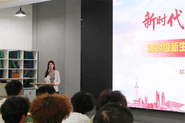 环境设计学院学生党支部书记胡素琴勉励新同学们锤炼思想品德、提升个人能力,积极向党组织靠拢。周佩 摄