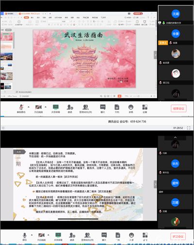 徐景老师教授的《广播电视节目策划与分析》和《影视作品赏析》都属于学理性和实践性并存的课程,这就要求老师根据学生的掌握情况进行灵活教学,单纯的直播课并不能完全满足教学需求。据徐景老师介绍,“在熟悉教学平台的使用过程中,我了解到腾讯课堂只是一个单向传播工具,腾讯课堂虽然为教师提供了PPT在线演示、音视频在线播放、在线签到、全程录课等丰富的实际功能,但是互动性差了很多,很难实现与学生的实时沟通;而腾讯会议则弥补了这一缺点,因此在进行到需要和学生进行互动共享的阶段,我就转移到腾讯会议继续课程的学习。”在《广播电视节目策划与分析》课程进行到“生活服务类节目策划与分析”模块时,徐景老师要求各组同学切换到腾讯会议平台上,汇报展示自己所设计的节目策划,再依次进行点评分析。视频会议较好地还原了面授课堂,为教师与学生面对面创造了更好地互动条件,能够进一步扎实学生的理论知识,最大限度地保证教学效果。