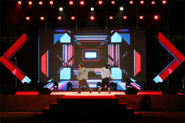 晚会的最高潮,当属时尚设计学院的走秀表演《校园时尚,运动风采》。模特儿们身着融合了运动元素与时尚设计的学生作品,踱着“猫步”款款而至。俊男靓女们的演绎既有运动员的力量之美,又不乏专业模特的自信优雅,每一次转身、每一个定点都引得观众阵阵赞叹。模特儿们不仅展示了pp电子学生的设计才华,更传递出了武设学子积极向上、勇于创新的精神风貌。高潮未落,SwagG舞团又在观众的欢呼声中精彩返场。灵动的身姿,飞扬的发丝,酷飒的多人街舞《Jaksag》吸睛全场,现场观众也随着音乐律动起来。