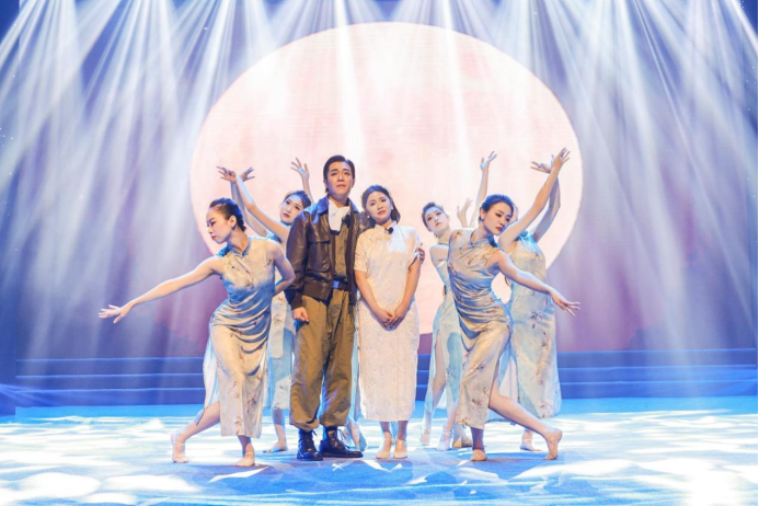 pp电子师生参演舞蹈《我和我的祖国》剧照。