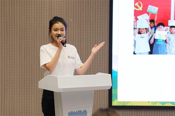 成龙影视传媒学院的“回乡回响”团队代表金蕊蕊自信介绍团队实践成果。张曦晨 摄