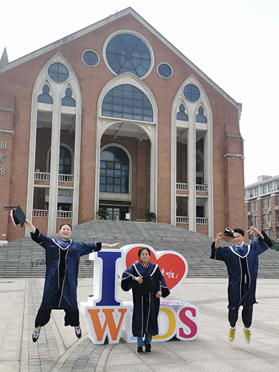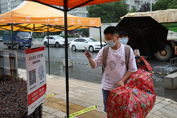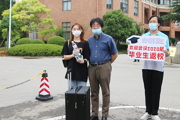 在现场工作人员的指引下,同学们踏着欢快的步伐走出通道,踏入阔别半年之久的武设校园。广播台熟悉的声音再次回荡在耳畔:“亲爱的2020届毕业生们:告别冬月,重逢夏阳,欢迎你们回家!”