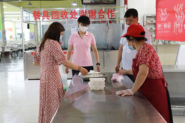 “哇,有泡面、有口罩、有消毒纸巾。”打开“防疫爱心包”,有同学惊讶地笑道,“好贴心的礼物。”工作人员解释,出于防疫安全考虑,学校食堂暂不开放窗口,但提供热水和进餐休息环境。“同学们可以在食堂食用爱心方便面,可以通过学校指定外卖进行点餐,还可以免费领取物业公司提供的爱心水饺。”前往食堂就餐的毕业生,不仅要通过专用通道进行扫脸测温,还需要洗手消毒方可进入。工作人员会按照一人一桌、间隔1.5米、同向用餐的标准安排座位。