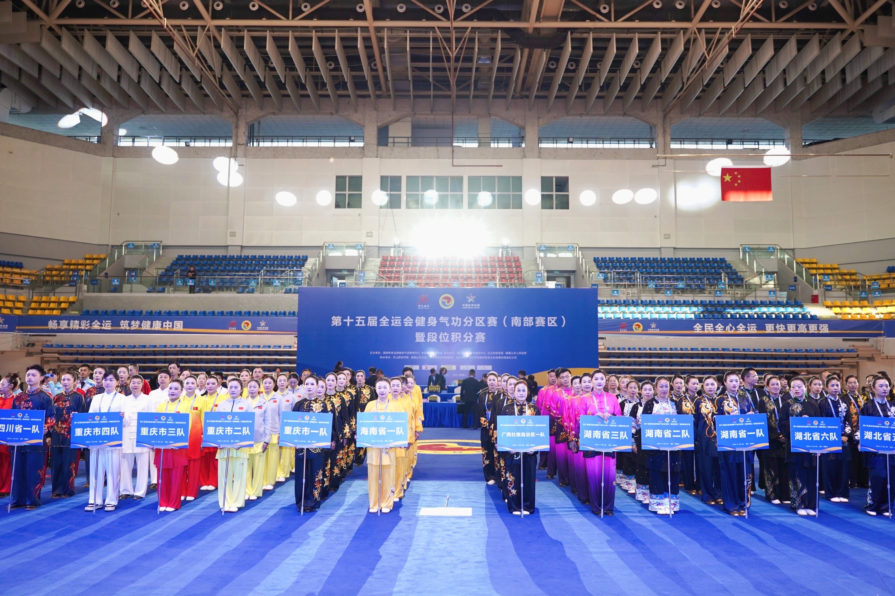 第十五届全国人民运动会健身气功分区赛(南部赛区)比赛现场。
