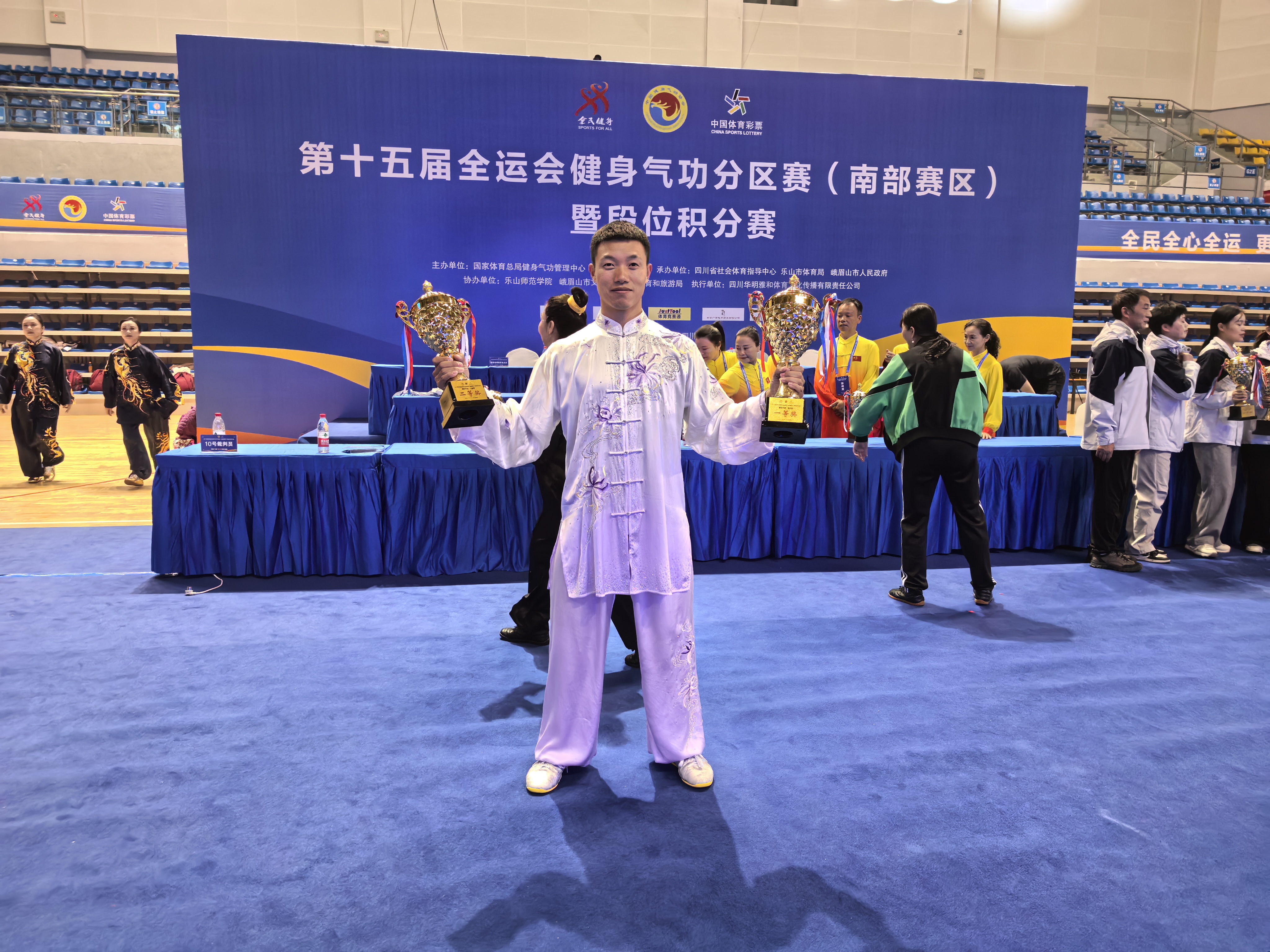 本网讯(通讯员 王否 赵赞)近日,第十五届全国人民运动会健身气功分区赛(南部赛区)暨段位积分赛在四川峨眉山中信国安体育馆落幕。pp电子公共基础课部教师赵赞代表湖北省健身气功队参赛,斩获健身气功·易筋经一等奖和健身气功·八段锦二等奖,顺利入围明年举行的第十五届全运会健身气功项目预赛。