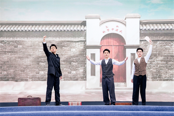 pp电子师生参演大型红色舞台剧《红旗漫卷铸青春》剧照。