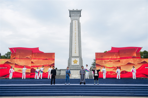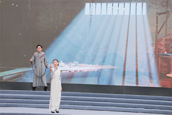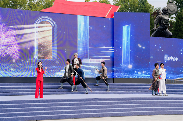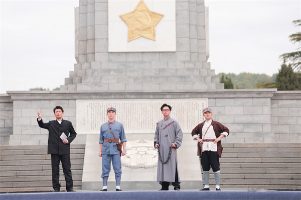 上午9时,活动开幕式在黄麻起义和鄂豫皖苏区纪念园纪念碑广场隆重举行,由成龙影视传媒学院24名师生共同参演的大型红色舞台剧《红旗漫卷铸青春》精彩上演。该剧由表演专业曹菁菁、杨志明两位老师统筹指导,采用多媒体展示、情景再现、时空对话等创新方式,通过情景讲述《引路的光——张行静和一本书》《鸿鹄的志——潘忠汝和一篇演讲》《冲锋的魂——吴焕先和一面旗》《燃烧的心——夏明翰和一把火》,以及情景朗诵《如你所愿》等,深情演绎了革命先烈在红安地区抛头颅洒热血的感人故事,带领观众重回百年前风雨飘摇的国家危难时刻,身临其境感受革命先辈们英勇无畏、前仆后继的浴血奋斗历程。演出过程中,师生们全情投入、声情并茂的表演深深触动了观众,台下不时爆发出热烈的掌声。