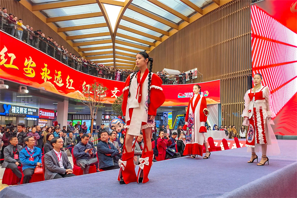 时尚设计学院师生精心策划的荆楚非遗“时尚展演”在红安万星里广场大放异彩。