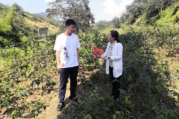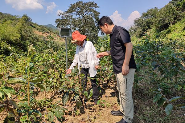 冉春桃一行查看甜柿苗生长情况。